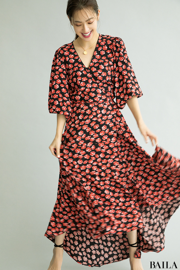 華やかワンピには、メンズライクなしっかり眉で女度を引き算【河北裕介×百々千晴の服とメイクのベストアンサー⑪】 ローリエプレス